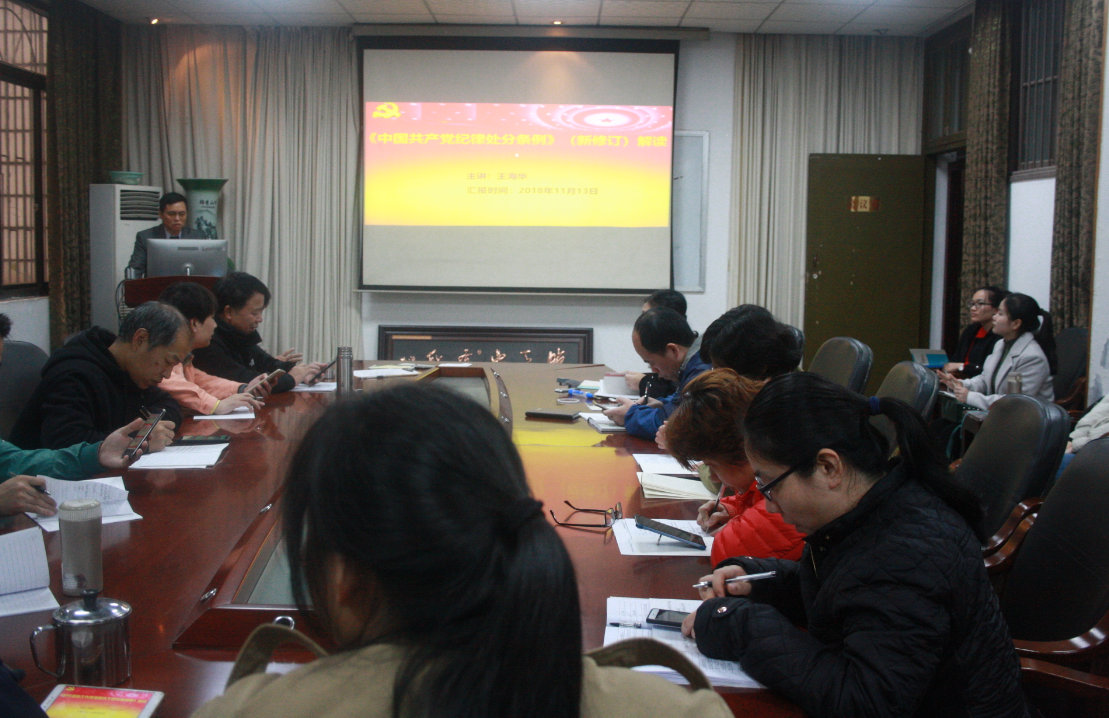 2018年11月13日下午,在生科楼105会议室,王海华院长以《中国共产党纪律处分条例》(新修订)解读为题,给AV影片直播 教职工和学生党员上了一堂深刻的专题党课。