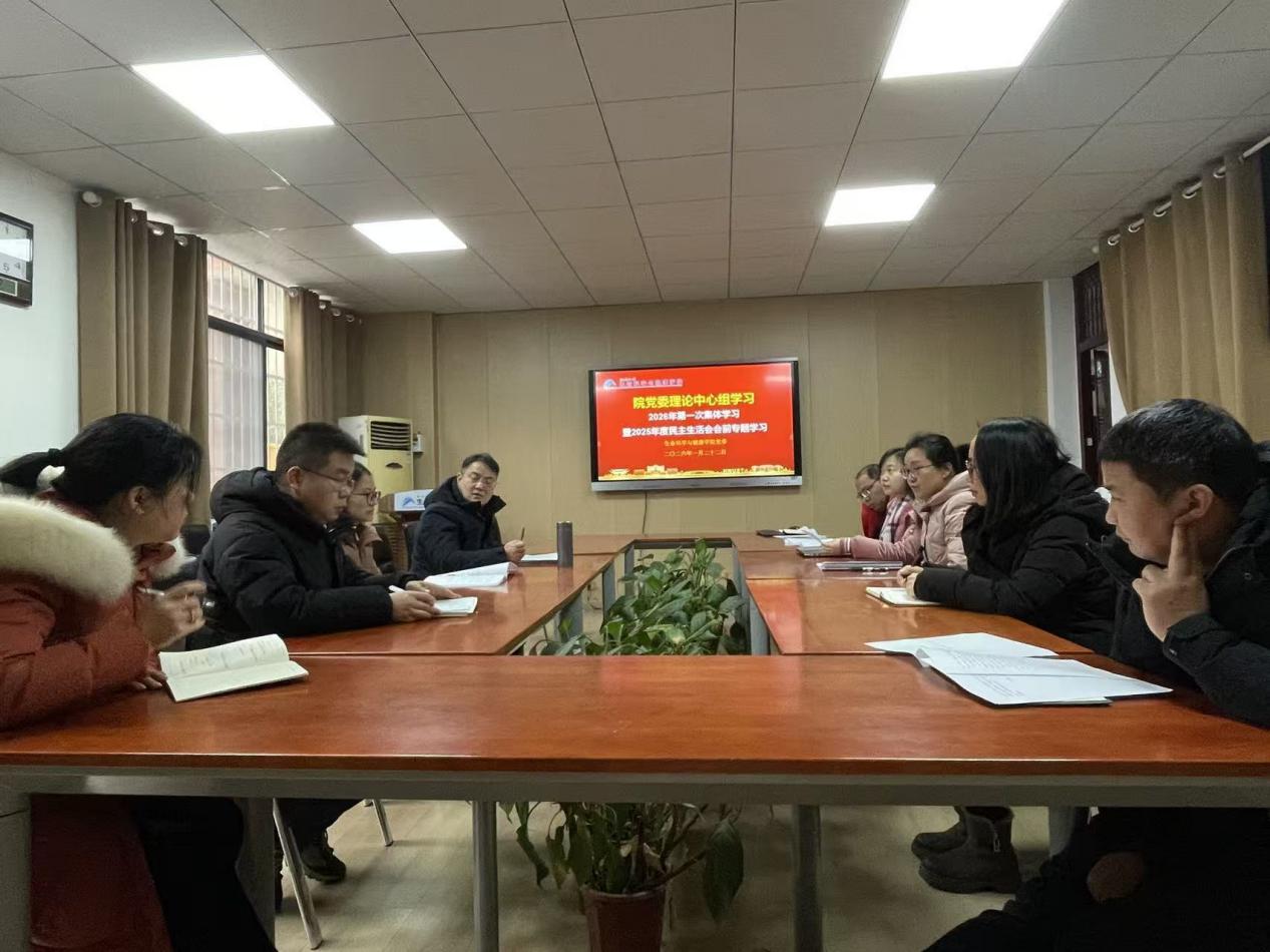 2026年1月22日上午,AV影片直播 党委理论学习中心组举行2026 年第 1 次集体学习暨 2025 年度民主生活会会前专题学习。院党委书记龙赢主持会议,院党委委员、院领导班子成员、三办主任、教工党支部书记以及组织员参加学习。
