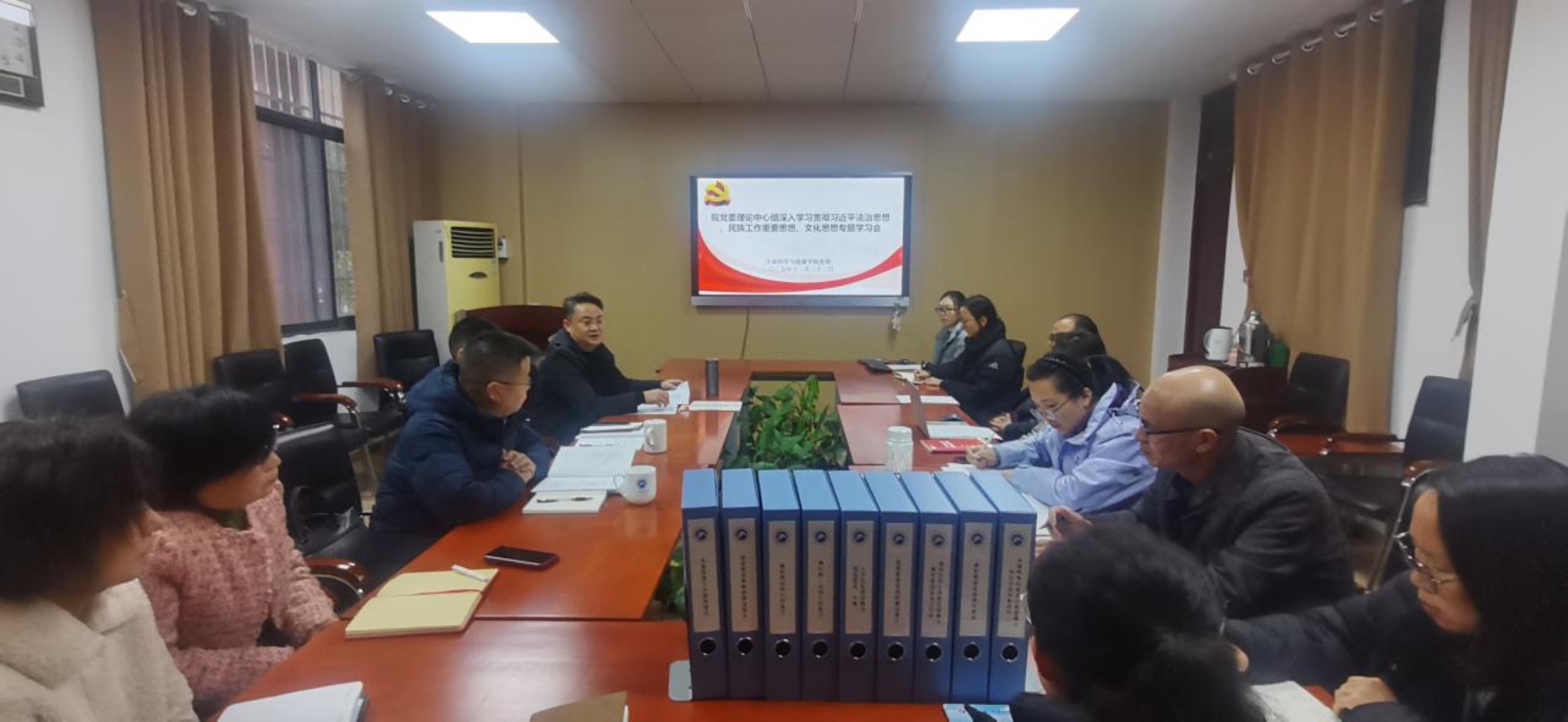 龙赢首先传达了近期党建工作检查的有关反馈意见,强调要高度重视理论学习,规范学习记录,切实推动党建与业务深度融合,确保新一届党委班子履职后各项工作系统规划、分工落实、取得实效。他强调,本次学习主题重要、内容扎实、研讨深入。他要求全体成员持续在深学细悟、融会贯通上下功夫,要以此次学习为契机,切实将习近平法治思想、民族工作重要思想、文化思想转化为推动学院事业高质量发展、落实立德树人根本任务的强大动力和实际成效。