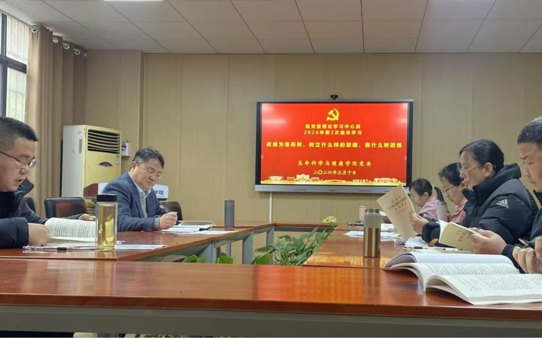 3月10日下午,AV影片直播 党委理论学习中心组在生物楼110举行2026年第二次集体学习(扩大)会,深入学习贯彻习近平总书记关于树立和践行正确政绩观的重要论述精神,传达落实中央、省委党的建设工作领导小组会议精神。院党委书记龙赢主持会议并作总结发言,学院党委理论学习中心组成员、三办主任、教工党支部书记、组织员参加学习。