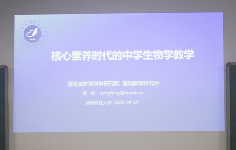 4月14日下午,湖南省教育科学研究院基础教育研究所中学生物学学科教研员,高中教育研究室主任曾峰应邀来校做主题为“核心素养时代的中学生物学教学”的讲座。AV影片直播 党委书记严明理、副院长孙远东、周定港、生物科学系系主任张大为及教师代表易俗、彭喜旭等老师到场参加。17级、18级生物科学专业本科生,20级学科教学(生物)研究生近200余人参加讲座。讲座由副院长周定港主持。