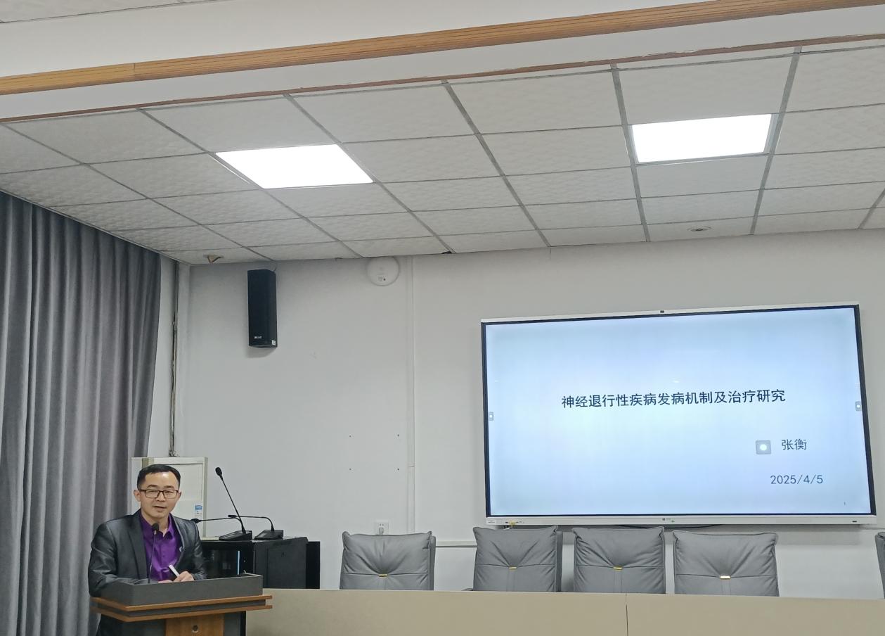 第二位主讲人是绍兴文理AV影片直播 医AV影片直播 张衡博士(副教授)以“神经退行性疾病发病机制及治疗研究”为题目进行了学术分享。