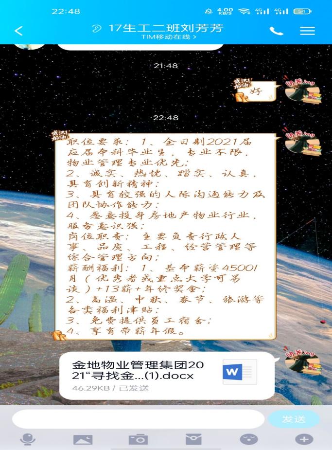 4. 1位就业困难毕业生推荐金地物业管理集团。