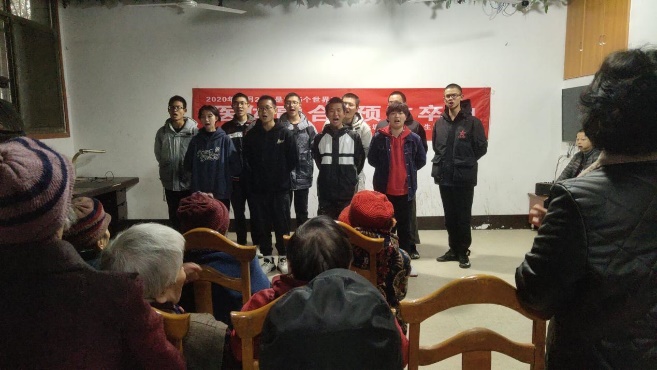 在院长的帮助下,爷爷奶奶们来到了活动厅,机电志愿者分会的李涛同学毛遂自荐,活跃气氛,随后,我们的表演节目环节也正式开始啦!