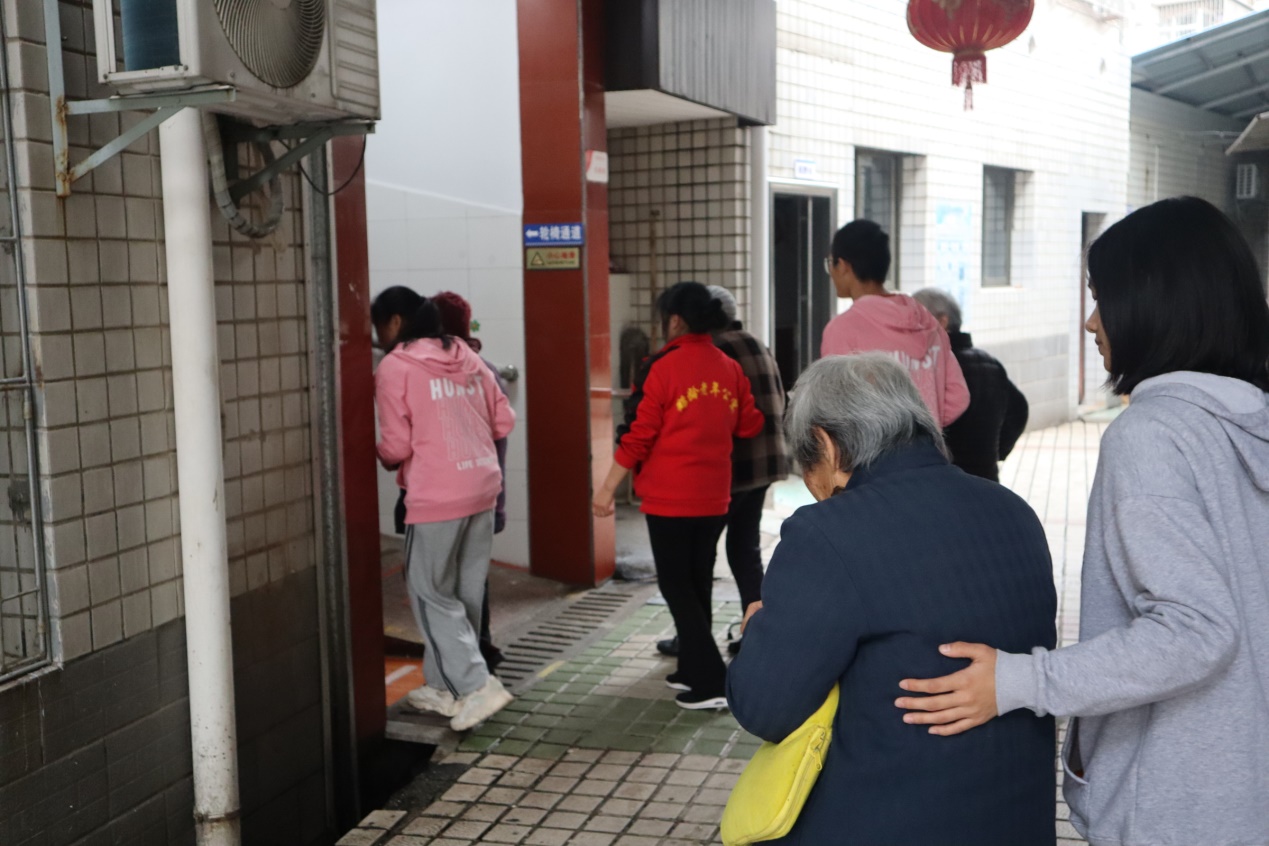 快乐的时间总是短暂的,节目演出接近尾声,我们搀扶着爷爷奶奶回到他们自己的房间,并为他们整理床褥、打扫卫生…要离开时,我们都很不舍,老人们也不舍,临走时还紧握着我们的双手,和我们说着心里话,但即使有着太多的不舍,我们也要暂时分别,只为期待下一次的相遇。