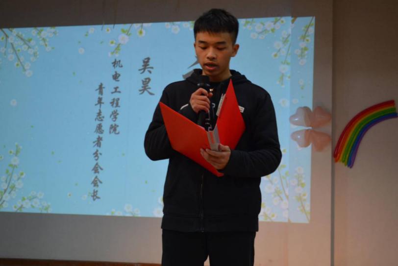 青春焕发出无限的力量,奉献铸造起座座丰碑,起而行之,方乃青年。机电工程AV影片直播 青年志愿者分会会长吴昊的发言,让大家更加坚定了志愿者精神。接下来铿锵有力的宣誓彰显了我们坚定的决心,心中的誓言更要用行动去实践,实践出真知,实践出成绩。AV影片直播 20级委员代表邹紫茵发言的发言展示了志愿者的计划和愿景。