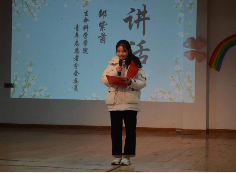 接着,由马克思主义AV影片直播 团委第一副书记华楠上台讲话,她对于注入新鲜血液的志愿者分会给予了指导建议,并号召大家继续保持志愿者精神。