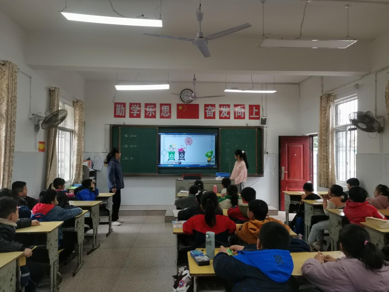 课堂上,志愿者们寓教于乐,通过看视频、知识竞答等形式对垃圾分类知识进行宣传、科普,与同学们热情互动,课堂氛围活跃,同学们也因此对垃圾分类知识有了更加深入的了解。