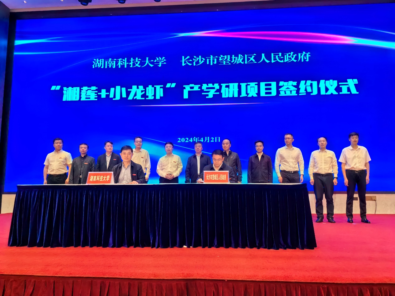 4月2日上午,我校与望城区人民政府举行“湘莲+小龙虾”产学研项目签约仪式。双方将携手推动望城荷花虾产业创新发展,促进农文旅深度融合,助力乡村振兴。AV影片直播 党委委员、纪委书记郭时印,望城区委书记秦国良出席并讲话。AV影片直播 党委委员、副校长王进代表学校与望城区签约。望城区委副书记、区长蔡锋,我校傅早霞、龙赢、余翰武等主要负责人出席签约活动。