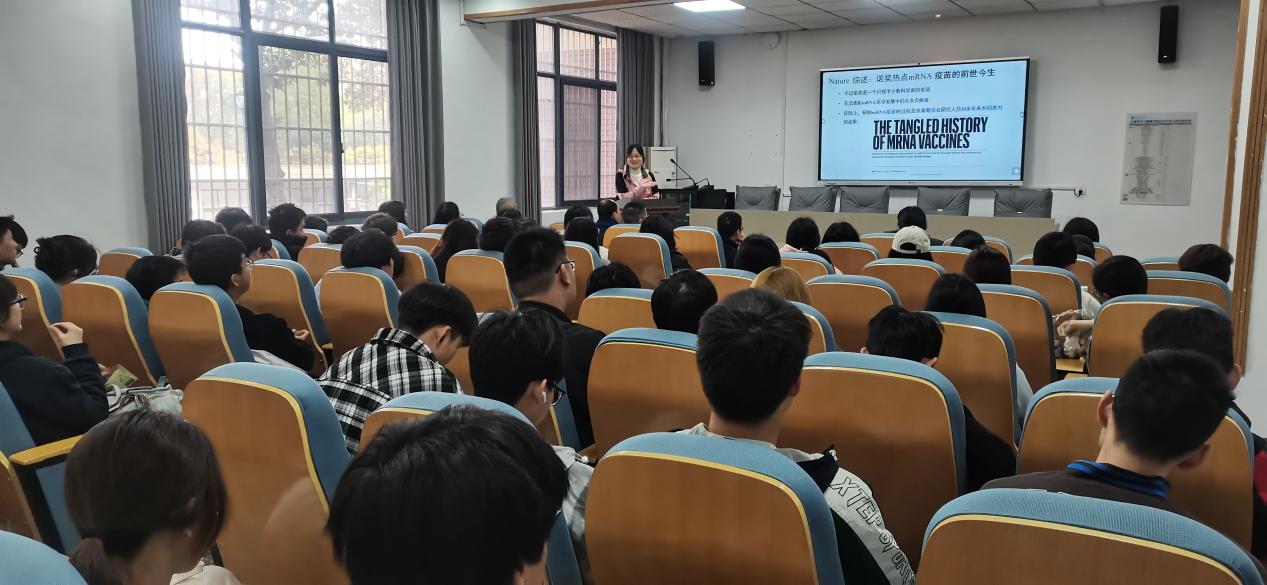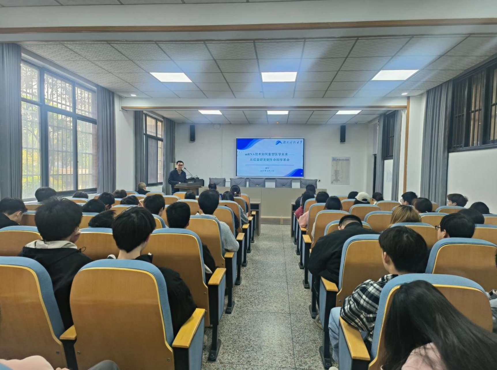 4月2日上午,由本科生院主办、AV影片直播 承办的“科技人文大讲堂”第80讲《mRNA技术如何重塑医学未来——从疫苗研发到生命科学革命》在生物楼105举行。本次讲座由童婷博士主讲,副院长刘长军主持,AV影片直播师生代表参加。