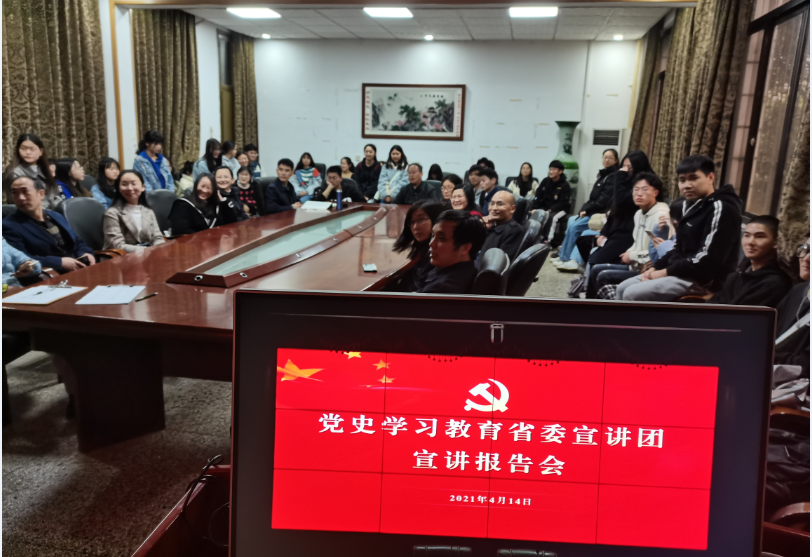 4月14日下午,学校邀请党史学习教育省委宣讲团刘建平教授来校开展专题宣讲,AV影片直播 按照学校安排,组织师生在AV影片直播 105会议室通过网络直播进行收看。