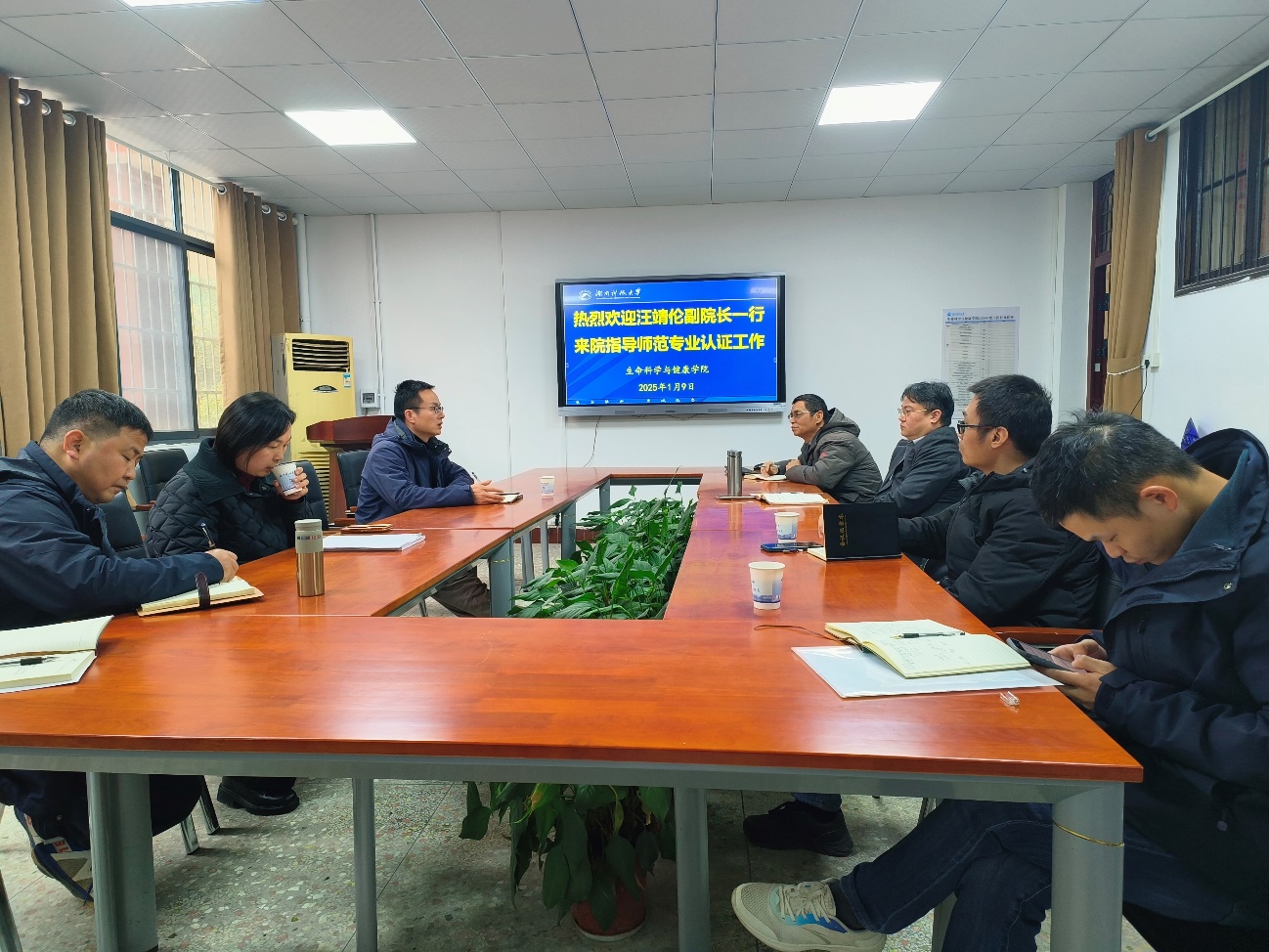 2025年1月9日上午,在生物楼110会议室组织召开了师范类专业认证及建设研讨会。AV影片直播党委书记、副院长龙赢、挂职副院长刘长军、生物科学专业负责人王海华、生科系主任张继红、生科系副主任曹军伟参加了此次会议。本次研讨会特邀请了化学化工AV影片直播 副院长汪靖伦、化学系主任焦银春莅临指导。