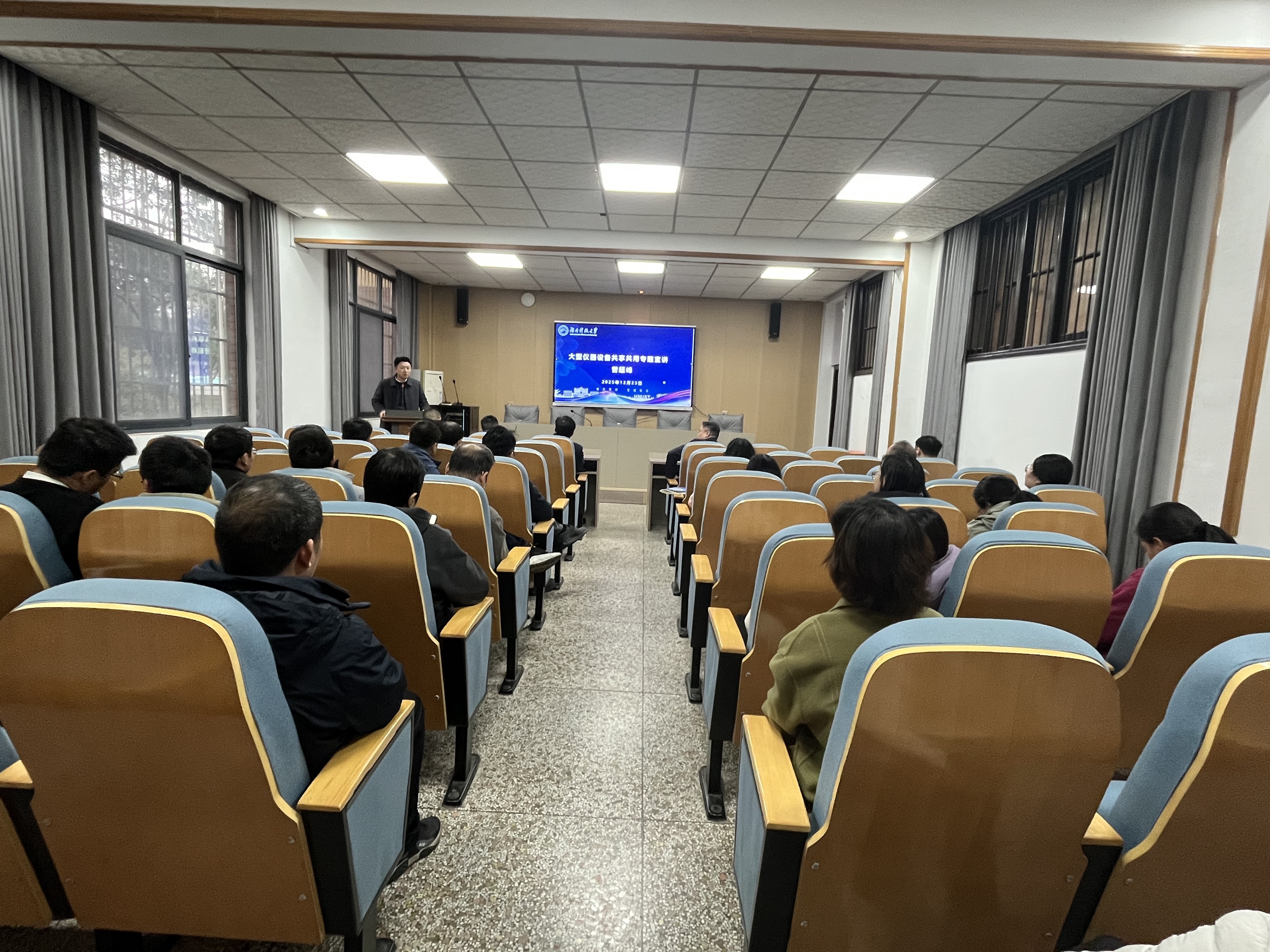 国有资产与实验室管理处曾超峰副处长应邀作了“大型仪器设备共享共用”专题报告。他详细解读了学校关于大型仪器设备开放共享的政策与流程,并就如何提高设备使用效益、促进跨学科科研协作等内容进行了具体介绍,对学院进一步提升资源利用效率和科研支撑能力具有指导意义。