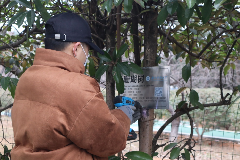 AV影片直播 植物学团队在前期搜集资料和实地调查的基础上,为校园植物制作了富有特色的“身份证”——植物标识牌。该铭牌上包含植物的学名、别名、花果期、习性等信息,还附有二维码,通过微信扫描可以了解该种植物的详细信息如形态特征、植物价值、植物趣闻。