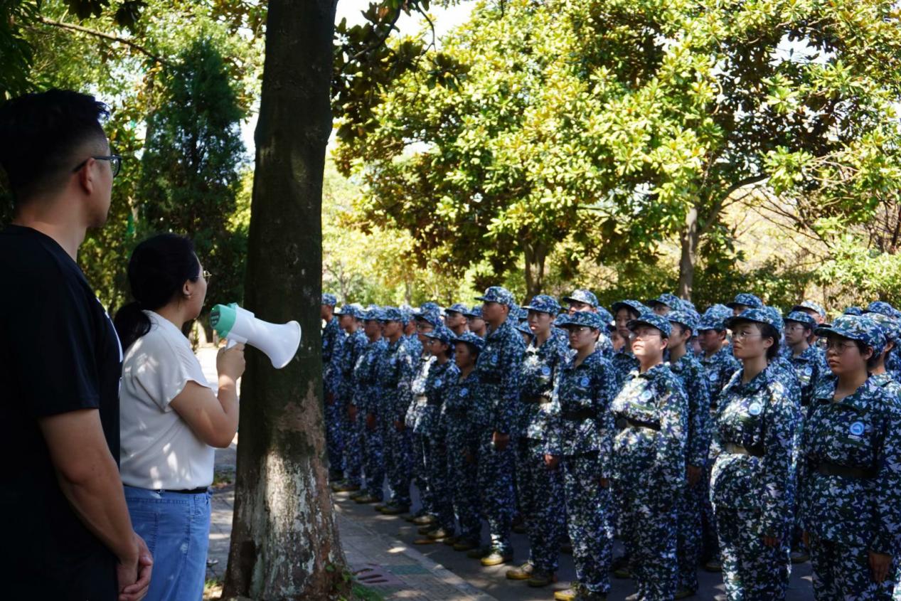 教官们步伐整齐地进入训练场,展示了军人的风采。五位教官强调了军训期间应该注意的安全问题、着装问题和内务整理等,希望同学们能够严于律己、听从指挥,严格遵守军训条令条例,以标准军人的姿态来对待本次军训。紧接着,教官们带领新生学唱校歌,同学们认真齐唱着“唯实惟新承教泽,志诚致志争贤良”,歌声回荡在整个训练场 。