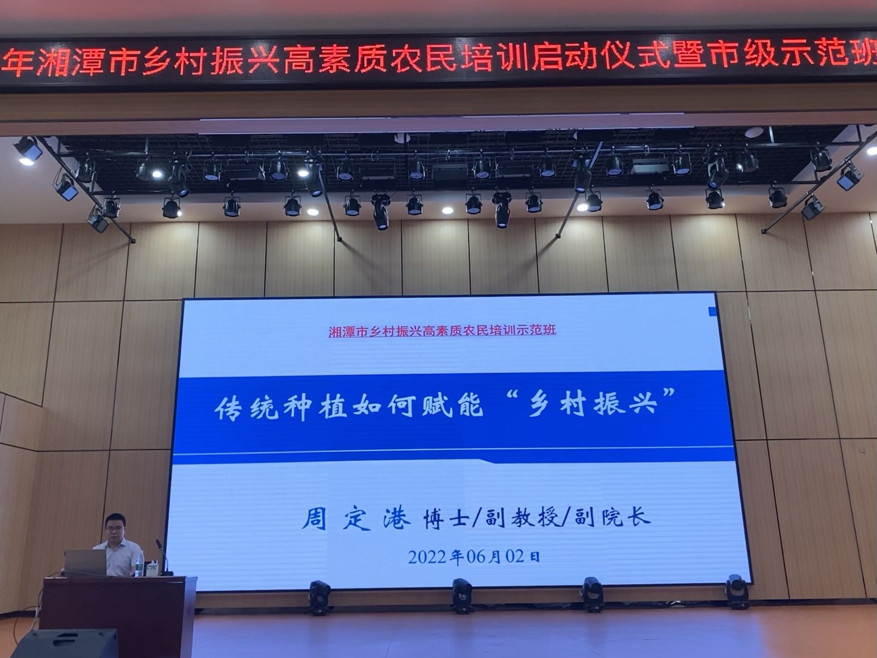 6月2日上午,AV影片直播副院长周定港副教授在2022年湘潭市乡村振兴高素质农民培训市级示范班开讲。本次乡村振兴高素质农民培训示范班由中共湘潭市委组织部主办,湘潭生物机电学校承办。