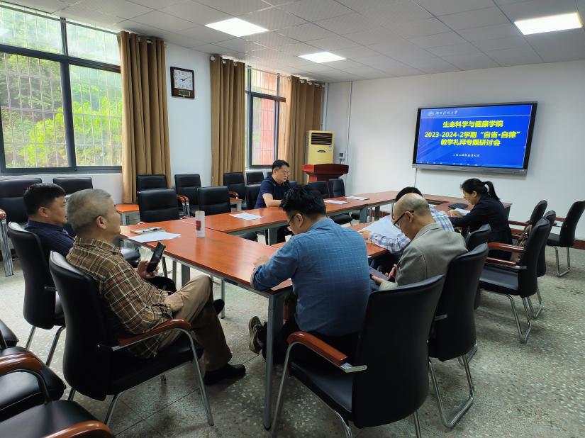 5月7日上午,AV影片直播 2023-2024-2学期“自律·自省”教学礼拜专题研讨会在生物楼110进行,党委书记龙赢、副院长周定港、党委副书记舒艳、各系部主任、实验中心主任及教学指导委员会全体成员与会。