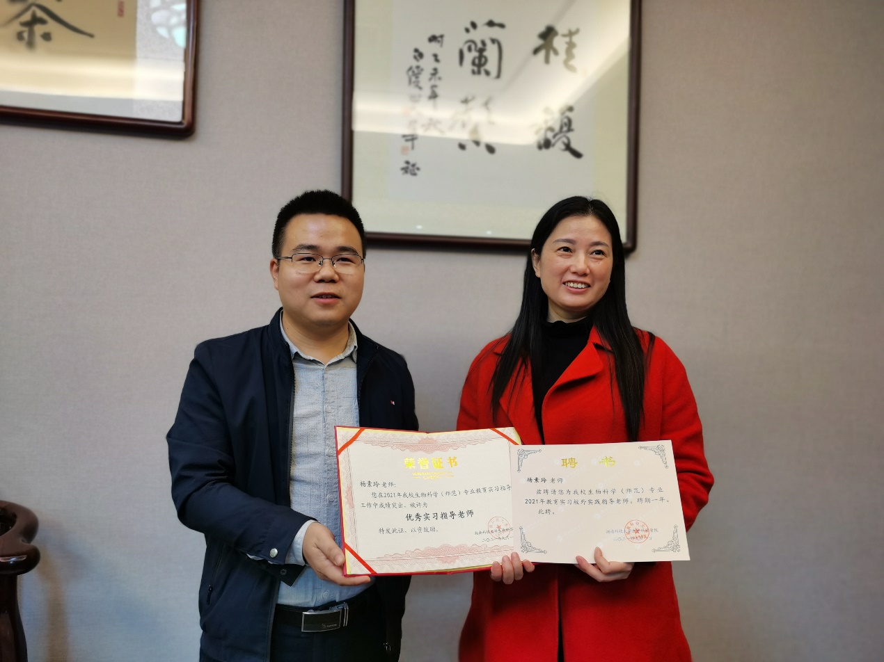 周定港副院长与实习学校领导进行了沟通和交谈,对实习学校表示感谢,表示要加强“高校-中学”的合作,助推基础教育和师范教育的双赢。