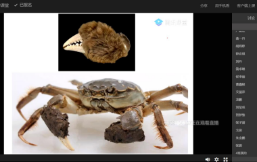 梁飞扬老师利用腾讯课堂展示的是软甲纲典型动物的基本特征及分类地位。梁老师课件制作优秀,图文并茂;普通话标准,语速适中,表达清晰自然,能理论联系实际,较为生动。