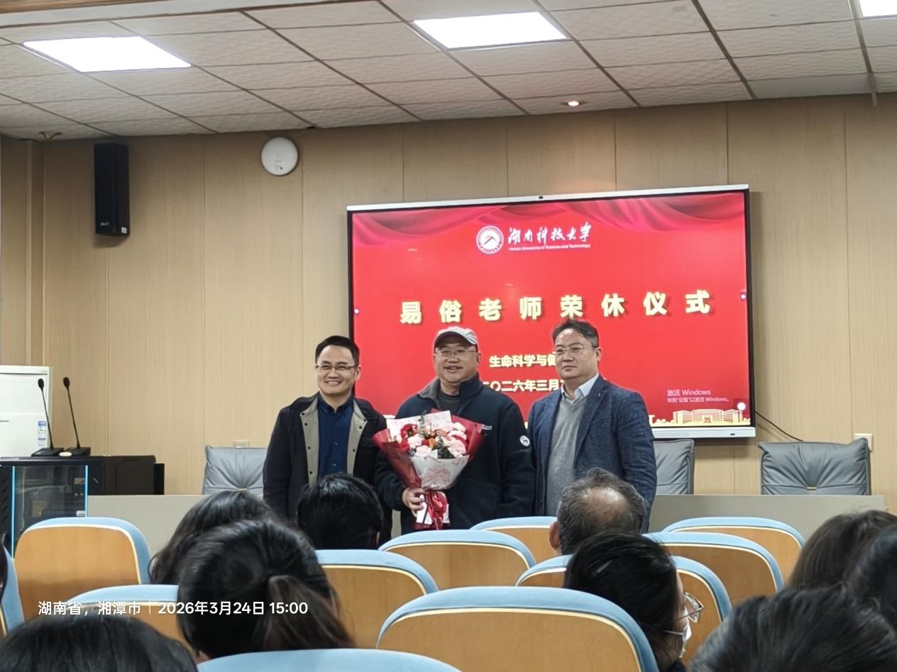 3月24日,易俗老师荣休仪式在生科楼105会议室举行,全院教职工齐聚一堂,共同致敬易俗老师数十年的坚守与奉献。