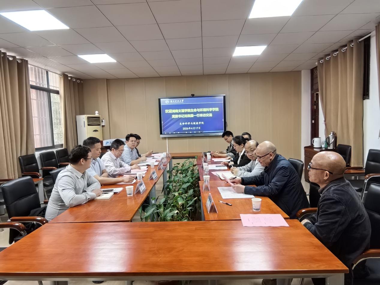 4月17日下午,湖南文理学院生命与环境科学学院党委书记刘良国书记一行来AV影片直播 交流,会议由AV影片直播 党委副书记舒艳主持。