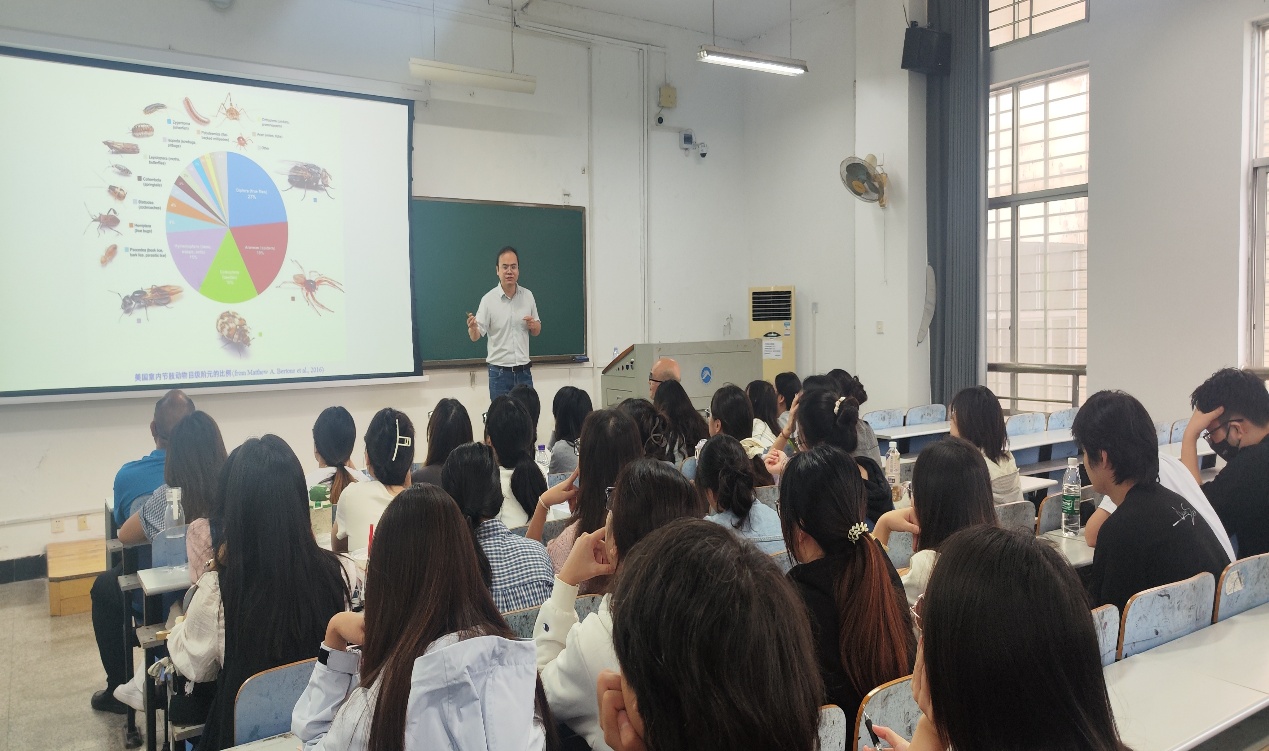 9月30日上午8:30,由AV影片直播 承办的科技与人文大讲堂第93讲,围绕“与“虫”同行——昆虫与人类”主题在八教414开讲。本次讲座由梁飞扬老师主讲,生物科学系主任唐新科主持活动,AV影片直播 师生代表到场观摩学习。