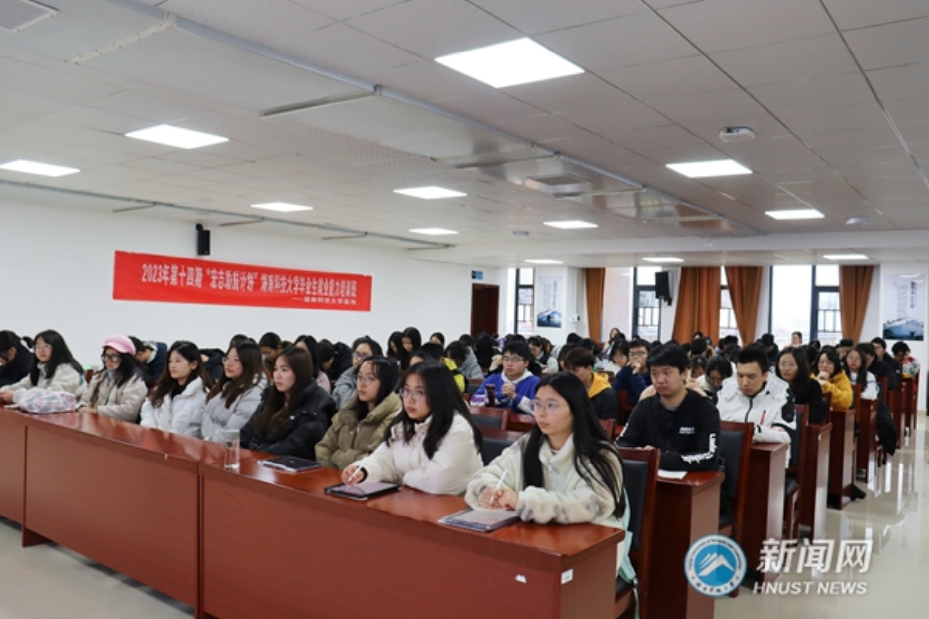 ▲AV影片直播 党委副书记舒艳主持“创新创业大讲堂”
