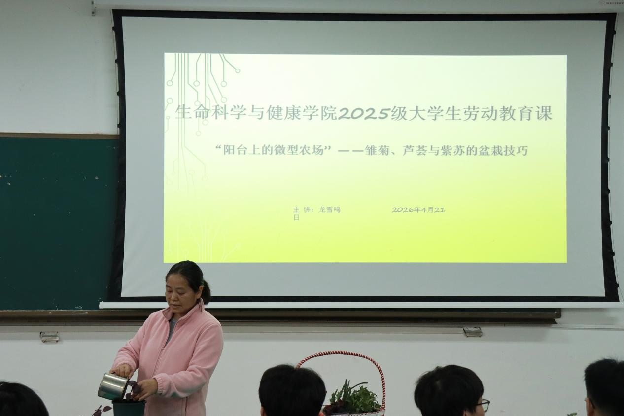 4月21日14:00,AV影片直播 2025级大学生劳动教育课在八教103正式开讲。25级辅导员龙雪鸣老师担任主讲,以“阳台上的微型农场”为主题,围绕雏菊、芦荟与紫苏的盆栽技巧展开教学,带领同学们现场边学边做,完成了一场从“植物盲”到“生活家”的劳动实践。